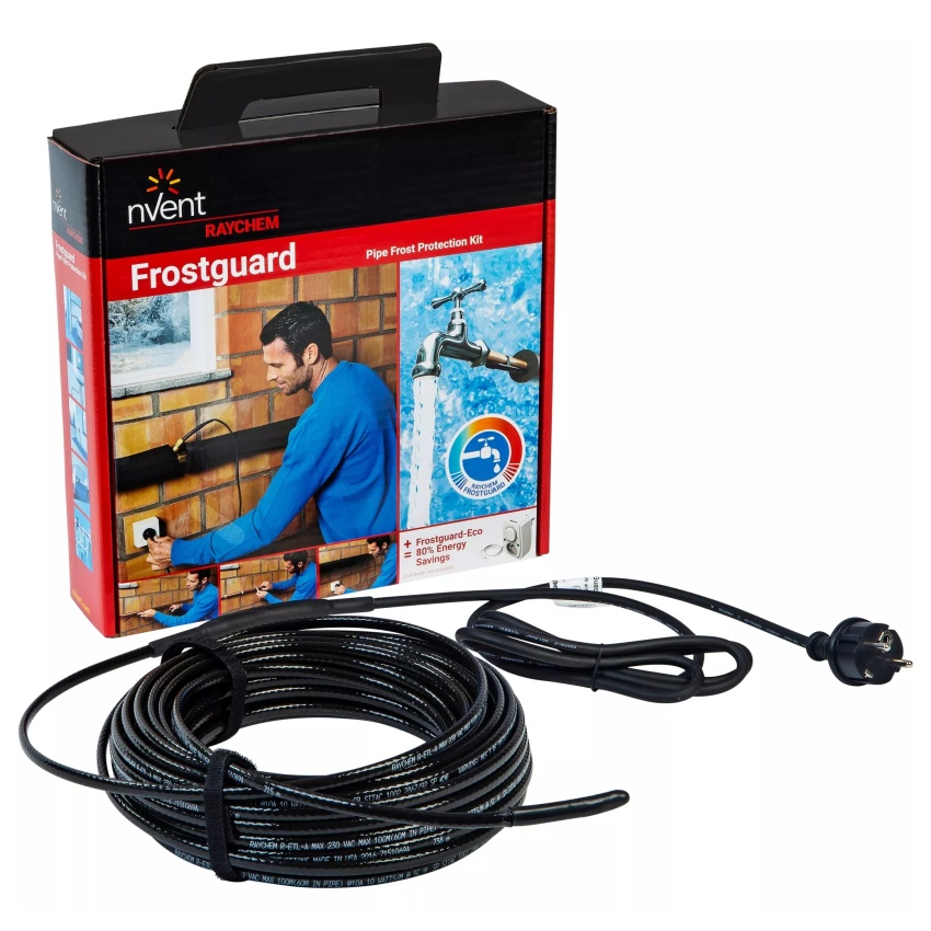 - FrostGuard představuje spolehlivé a rychlé řešení problémů se zamrzáním trubek v zimě a s poškozením čerpacích bodů způsobeným dlouhodobým mrazem. Díky použití technologie samoregulace nevyžaduje zařízení termostat.