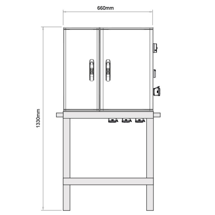Elektroměrový staveništní rozvaděč na stojanu řady NST4. Rozvaděč je osazen zásuvkami 400V a 230V, hlavním vypínačem, hlavní jističem, a je připraven pro osazení elektroměru na kříž. Použitá skříň je z vysoce odolného materiálu, který běžně odolává nepříznivým vlivům na stavbách. Staveništní rozvaděč je včetně kompletní dokumentace, typové zkoušky, schématu zapojení a výrobního štítku. Vyrábí se v krytí IP44 (IP21 při otevřených dveřích), díky kterému lze výrobek použít pro venkovní prostředí. Rozvaděč vhodný pro ČEZ a EON. Není vhodný pro PRE.