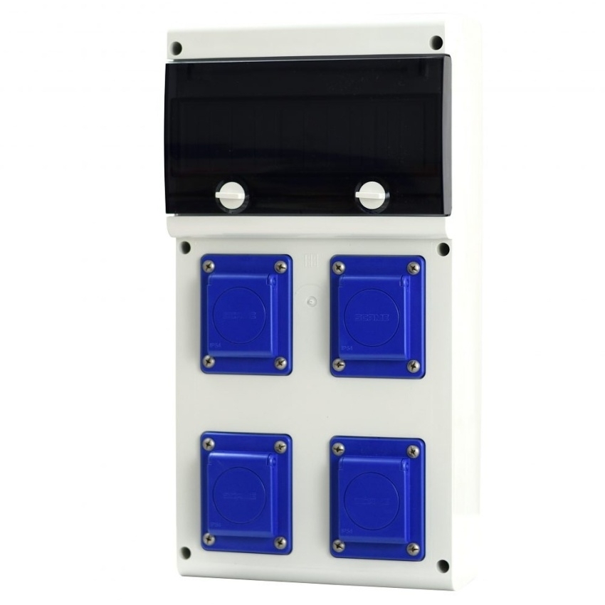 Zásuvková rozvodnice jištěná, s chráničem. Obsahuje 4x16A domovní zásuvky. Počet jističů "MCB": 4xB16/1.