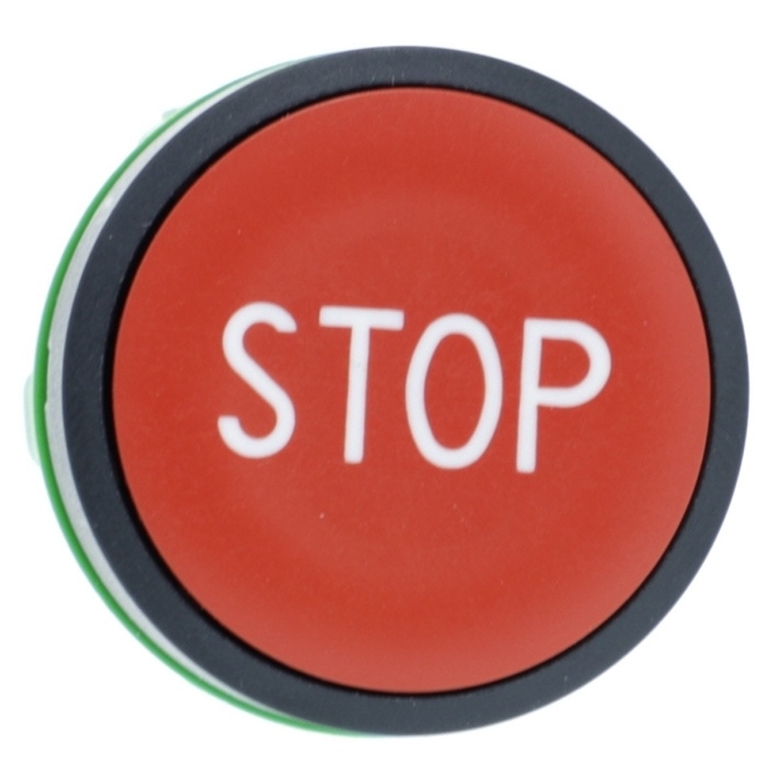 Ovládací hlavice s hřibovým knoflíkem Harmony XB5 funguje s pružinovým návratem. Je označen písmenem "STOP".