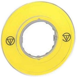 Kruhový štítek pro ovladač nouzového zastavení, průměr 60 mm. Bez popisu.