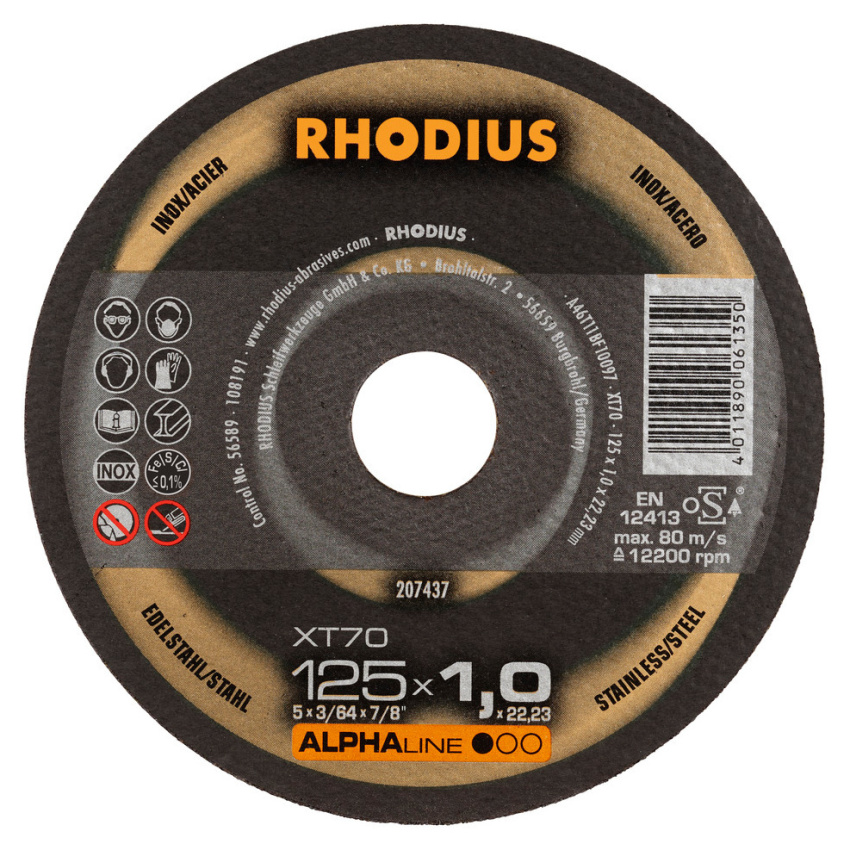 Set řezných kotoučů RHODIUS 125x1,0x22,23 10ks 208226