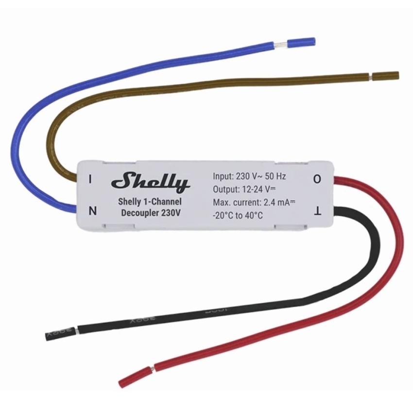 Shelly 1-Channel Decoupler 230V je kompaktní modul určený pro bezpečné propojení klasických AC vypínačů se zařízeními napájenými stejnosměrným proudem (DC). Převádí signál 230 V AC na nízkonapěťový DC spouštěč, který je ideální pro chytrá zařízení, jako jsou Shelly Plus RGBW PM, Pro RGBWW PM, Plus Uni nebo Plus Add-On. Díky elektrické izolaci chrání připojené obvody před poškozením, minimalizuje riziko rušení a umožňuje snadnou integraci do chytré domácnosti bez potřeby složitých úprav elektroinstalace.