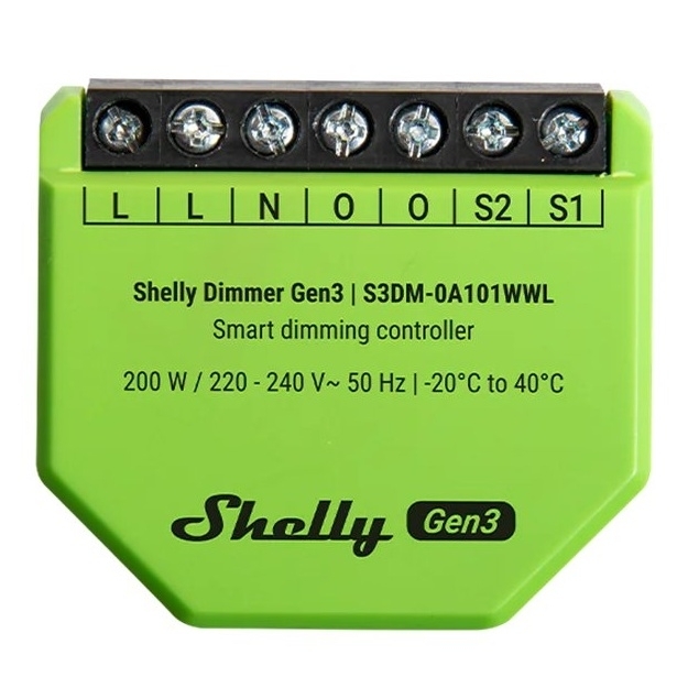Shelly Dimmer Gen3 je kompaktní a výkonný stmívací modul, který umožňuje pohodlné dálkové ovládání světel prostřednictvím Wi-Fi nebo Bluetooth. Díky chytrému provedení lze zařízení použít i v elektroinstalačních krabicích s omezeným prostorem a bez nutnosti neutrálního vodiče. Modul je vybaven pokročilým čipem Shelly, ochranou proti přetížení a vysokým teplotám a podporuje širokou škálu stmívatelných světelných zdrojů včetně LED, halogenových žárovek a transformátorů. Samozřejmostí je možnost místního i dálkového ovládání, časové plány a podpora chytrých platforem a hlasových asistentů.