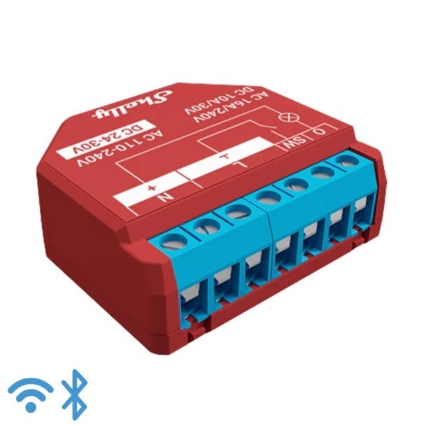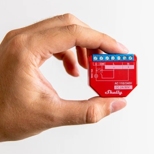 Shelly Plus 1 PM je inteligentní relé s Wi-Fi, 1 kanál 16 A, s měřením spotřeby energie.