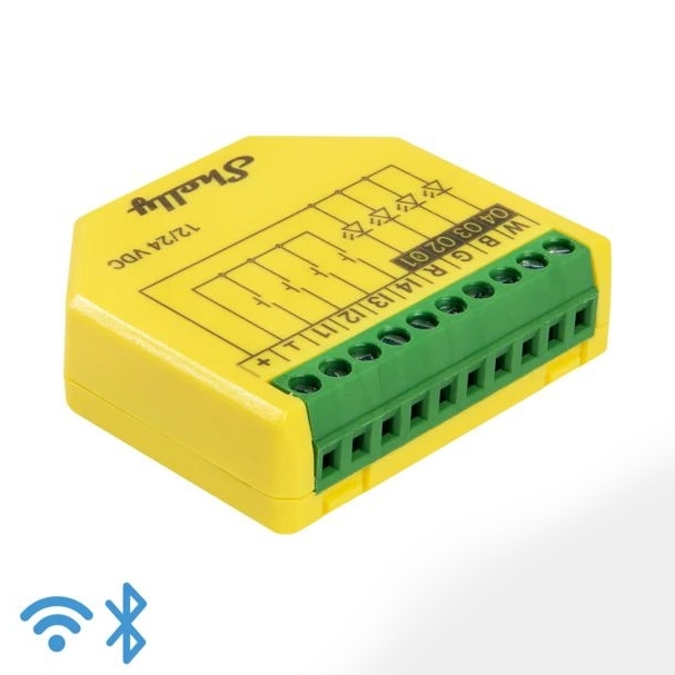 SHELLY Plus RGBW PM Modul řízení LED pásků, 12/24V DC, WiFi žlutá