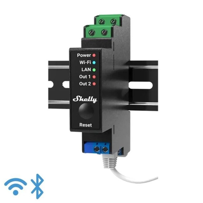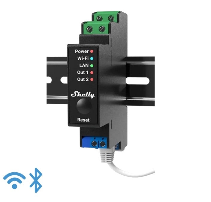 SHELLY PRO 2PM Spínací modul na DIN lištu, 2 kanály, 1-fázový, 2x16A, 110-240V AC, měření spotřeby, WiFi, LAN