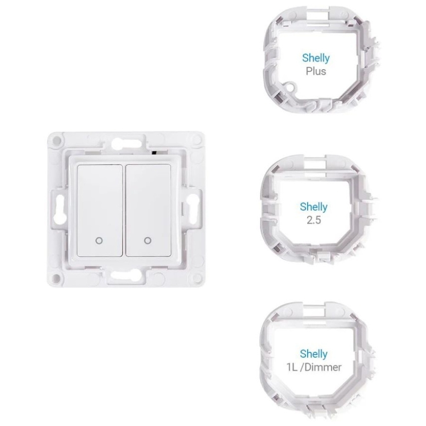 Inteligentní nástěnný spínač Shelly s dvěma tlačítky je navržen pro snadné ovládání chytrých relé. Tento spínač je dodáván s držáky pro připojení relé.