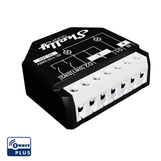 SHELLY Wave 2PM Spínací modul, 2 kanály, 16A, měření spotřeby, Z-Wave