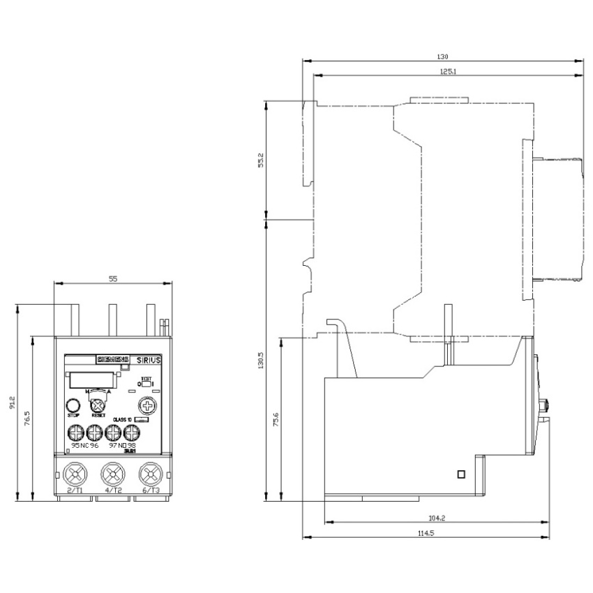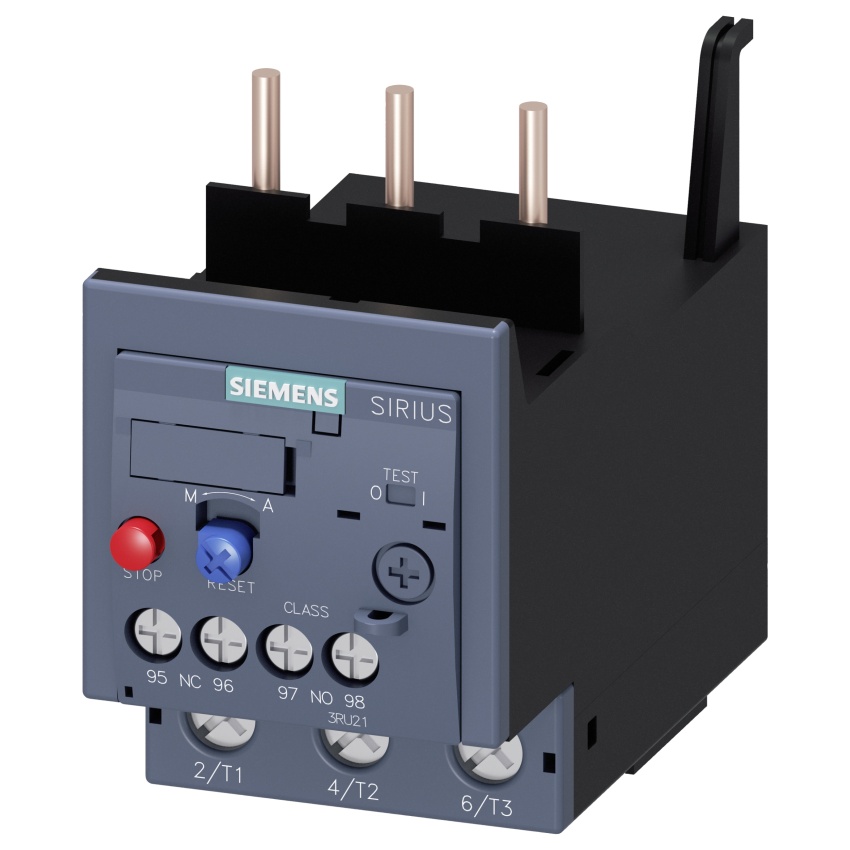 - tepelné relé na přetížení SIRIUS 3RU2 k proudově závislé ochraně spotřebičů s normálním rozběhem proti nepřípustně vysokému zahřátí vlivem přetížení nebo výpadku fází.