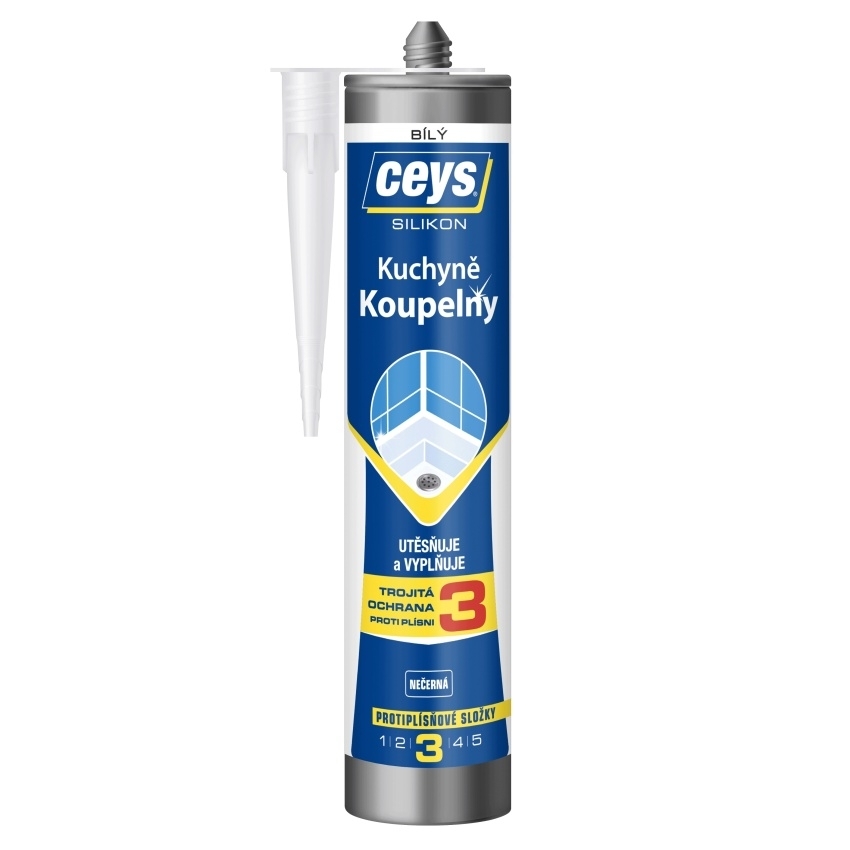 Acetátový silikon je ideální pro tmelení spojů v kuchyních a koupelnách. Zabraňuje prosakování vody a vlhkosti.