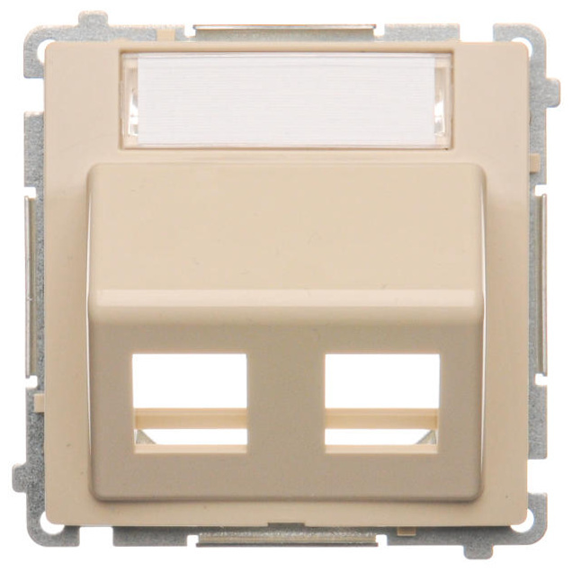 Kryt zásuvky komunikační dvojnásobné (pro prvky Keystone), šikmé s popisovým polem, Béžový