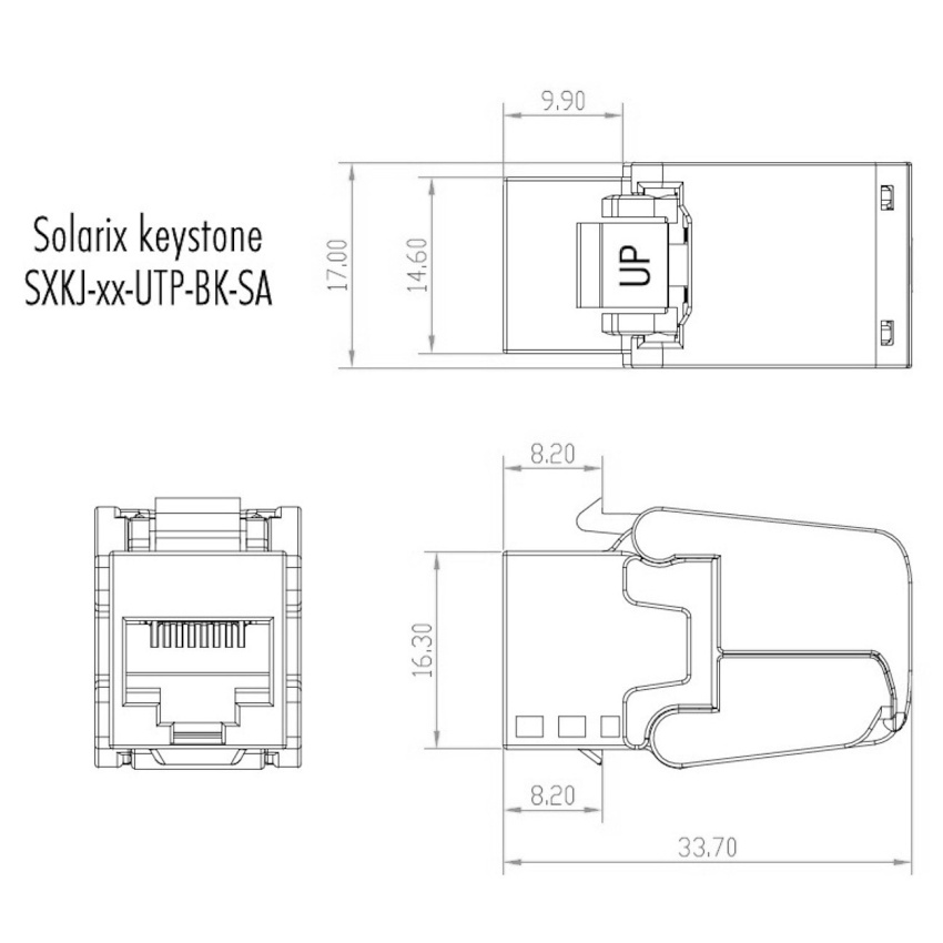 Síťový keystone SOLARIX samořezný RJ45 UTP CAT5E SXKJ-5E-UTP-BK-SA černý 25286701
