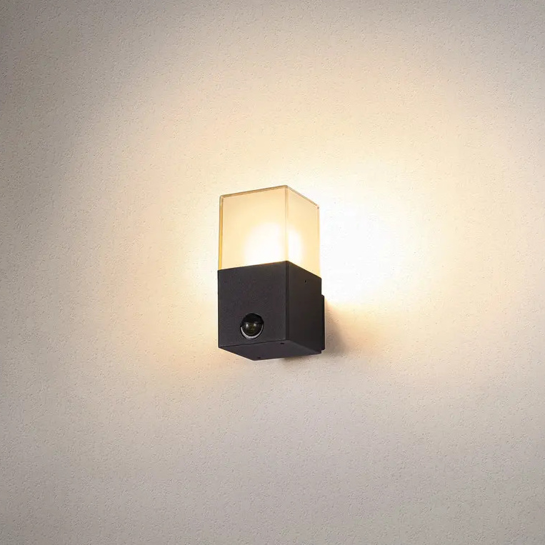 Výška: 170 mm, Pohybový senzor: ano, Hmotnost: 600g, Šířka: 129mm, Délka: 85mm, Ochrana IP: IP44, Celkový příkon: 11W, Napětí: 220-240V, Patice: E27, Materiál: hliník / sklo, Barva: antracit, Kolekce: GRAFIT, Počet světelných zdrojů: 1
