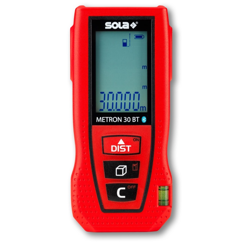 - Kompaktní laserový dálkoměr SOLA METRON 30BT umožňuje měření až do 30m.