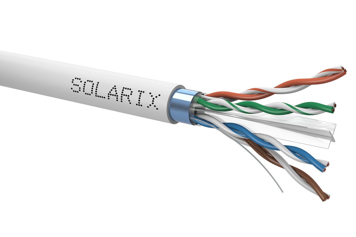 Instalační kabel Solarix s označením SXKD-6-FTP-LSOH je spolehlivý stíněný kabel kategorie 6, který je určený pro provoz ethernetových protokolů, včetně 2.5GBASE-T a 5GBASE-T. Konstrukce kabelu je F/UTP s plastovým křížem, který zajišťuje maximální oddělení párů od sebe po celé délce kabelu. Typ pláště je PVC s třídou reakce na oheň Eca. Vodiče kabelu jsou vyrobeny z kvalitního měděného drátu s čistotou mědi 99,97%. Kabel bez problémů splňuje požadavky z mezinárodních standardů ISO/IEC 11801, EN 50173 a ANSI/TIA 568.2-D. V případě CPR (nařízení EU č. 305/2011) je kabel testován u nezávislé laboratoře FORCE TECHNOLOGY v systému posuzování vlastností AVCP 3. Stejně jako ostatní kabely Solarix, je i kabel SXKD-6-FTP-PVC značen metráží po 1 m v rozsahu od 0 do 500 m. Kabel je dodáván na vysoce pevné dřevěné cívce, na které jsou uvedeny všechny nezbytné produktové informace, včetně čárových kódů, výrobní šarže, popisu a nejdůležitějších technických parametrů.