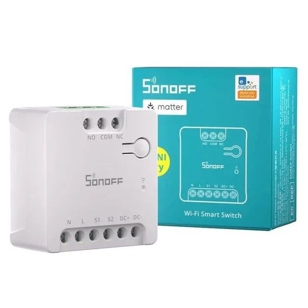 SONOFF MINI Dry Wi-Fi je kompaktní chytrý spínač s bezpotenciálovým relé kontaktem pro ovládání zařízení přes aplikaci eWeLink a hlasové asistenty. Podporuje střídavé i stejnosměrné napájení a integraci s Matter.