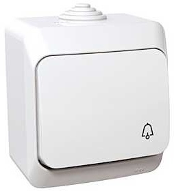 Ovladač tlačítkový řazení. 1/0, se symbolem "zvonek", bílý