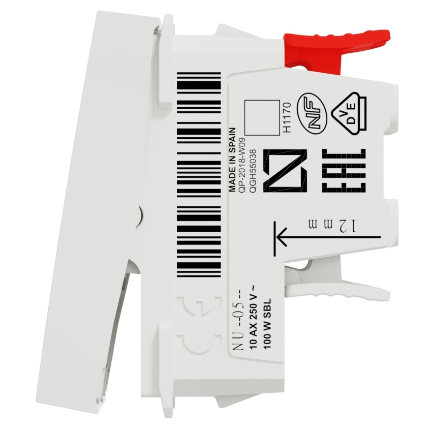 Switch, New Unica, intermediate, 10AX, 1 module, screwless terminals, antibacterial, IP4X, white