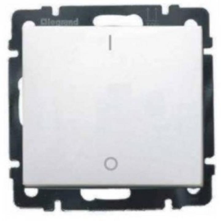 Dvojpólový spínač č. 2. Mechanismy s kovovou montážní deskou. Montáž do přístrojových krabic pomocí šroubů nebo příchytek. Dodávané bez rámečku.