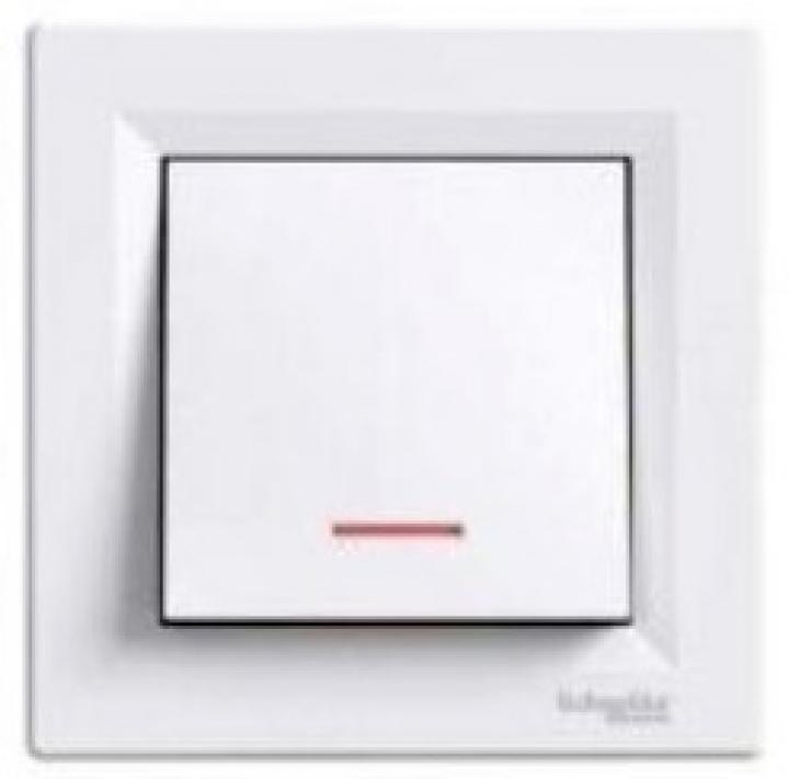 Spínač s orientační kontrolkou Schneider Electric Asfora řazení 1So, EPH1400121, 10A, bezšroubové svorky, bílá