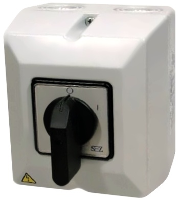 Vačkový spínač v krytu IP65, s čelní deskou 63A, 0-1, 3P