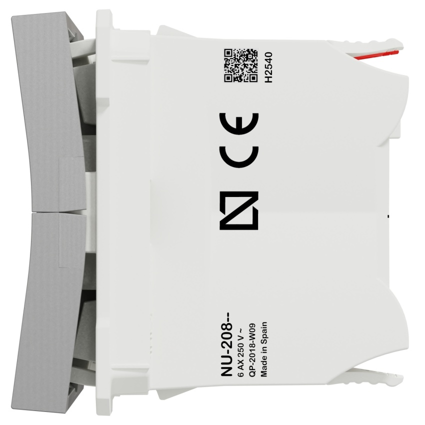 Schneider Electric Nová Unica žaluziový spínač NU320830 je mechanismus v barvě aluminium. Připojovací svorky tohoto žaluziového spínače jsou bezšroubové. Způsob upevnění tohoto zařízení je nacvaknutí. Šířka je 45 mm, výška 45 mm, hloubka 44,35 mm, hloubka zapuštění 32,8 mm a hmotnost výrobku je 0,0335 kg. Se 2 moduly. Je s orientační kontrolkou bez LED diody. Dodává se ve 3 polohách žaluziového spínače. Tento výrobek se prodává v počtu 10 kusů. Získal také certifikát AENOR, CE, EAC, NF. Je vyrobeno z Cu. Zn15, PBT (polybutylentereftalát) GF30, PC (polykarbonát) GF10 FR, termoplastický materiál stabilizovaný ABS-UV, je tento roletový spínač spolehlivý a odolný. Kromě toho dosahuje úrovně ochrany IK04, která může pomoci chránit před nárazem. Navíc splňuje normu IEC 60669-1, směrnici LV, Ro. HS. Také je šetrné k životnímu prostředí, přičemž je odolné vůči UV záření, acetonu, alkoholu, čpavku, bělidlu, tekutému mýdlu, oleji, benzínu, kapalině na čištění oken. Dielektrická pevnost, což je míra elektrické pevnosti materiálu jako izolantu, je 2000 V. A jeho jmenovitý proud je 6A. Tento žaluziový spínač rovněž neobsahuje SVHC (látky vzbuzující mimořádné obavy). Nová Unica zahrnuje sadu nových designů, barev a materiálů. Uživatelé mohou těžit z krásného designu, který odpovídá jejich stylu, a inovativních produktů. Nová Unica je navržena s chytrými funkcemi, které jsou flexibilní, snadno pochopitelné a rychle se instalují a poskytují řešení pro všechny požadavky zákazníků.