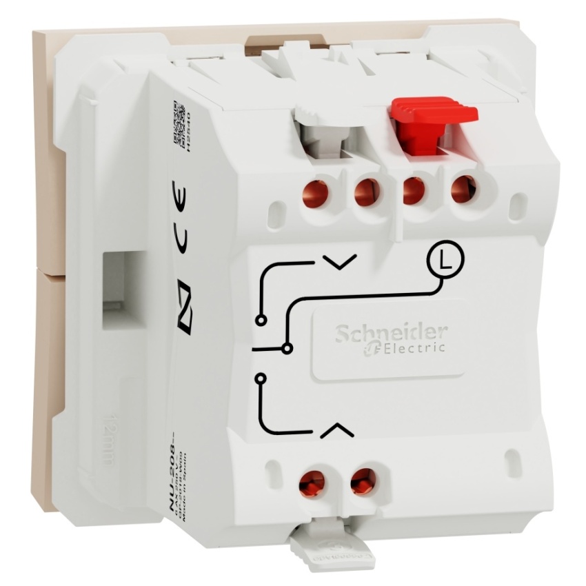 Schneider Electric Nová Unica žaluziový spínač NU320844 je mechanismus v barvě béžové. Připojovací svorky tohoto žaluziového spínače jsou bezšroubové. Způsob upevnění tohoto zařízení je nacvaknutí. Šířka je 45 mm, výška 45 mm, hloubka 44,35 mm, hloubka zapuštění 32,8 mm a hmotnost výrobku je 0,0335 kg. Se 2 moduly. Je s orientační kontrolkou bez LED diody. Dodává se ve 3 polohách žaluziového spínače. Tento výrobek se prodává v počtu 10 kusů. Získal také certifikát AENOR, CE, EAC, NF. Je vyrobeno z Cu. Zn15, PBT (polybutylentereftalát) GF30, PC (polykarbonát) GF10 FR, termoplastický materiál stabilizovaný ABS-UV, je tento roletový spínač spolehlivý a odolný. Kromě toho dosahuje úrovně ochrany IK04, která může pomoci chránit před nárazem. Navíc splňuje normu IEC 60669-1, směrnici LV, Ro. HS. Také je šetrné k životnímu prostředí, přičemž je odolné vůči UV záření, acetonu, alkoholu, čpavku, bělidlu, tekutému mýdlu, oleji, benzínu, kapalině na čištění oken. Úroveň dielektrické pevnosti, tj. napětí, kterému materiál, z něhož je tento roletový spínač vyroben, odolá při dané tloušťce stěny před dielektrickým průrazem nebo elektrickým výbojem, je 2000 V. A jeho jmenovitý proud je 6A. Tento žaluziový spínač rovněž neobsahuje SVHC (látky vzbuzující mimořádné obavy). Nová Unica zahrnuje sadu nových designů, barev a materiálů. Uživatelé mohou těžit z krásného designu, který odpovídá jejich stylu, a inovativních produktů. Nová Unica je navržena s chytrými funkcemi, které jsou flexibilní, snadno pochopitelné a rychle se instalují a poskytují řešení pro všechny požadavky zákazníků.