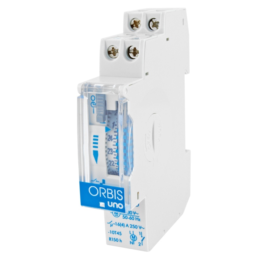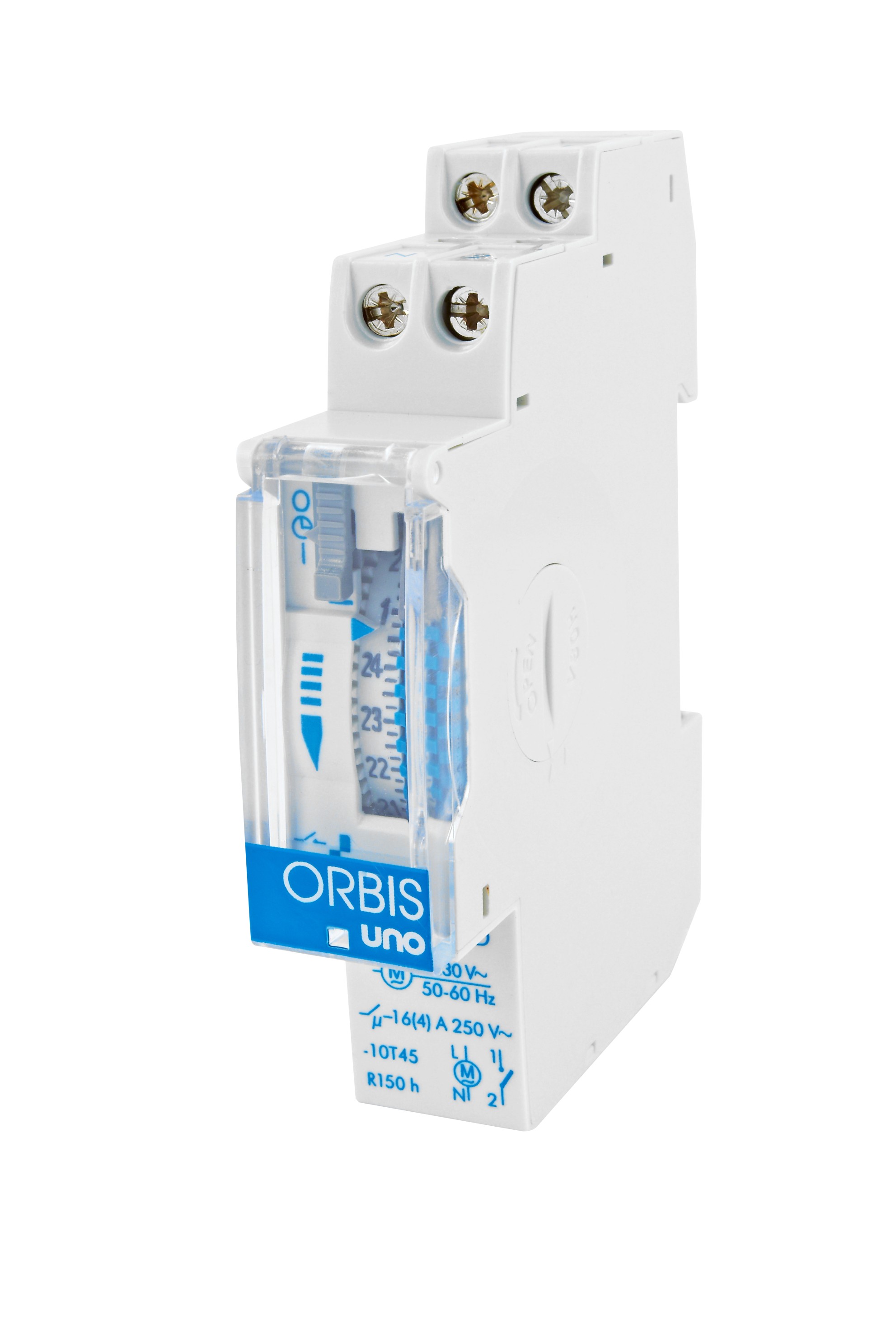 Spínací hodiny ORBIS UNO QRD ELEMAN analog., denní, 1M se zálohou, šedé, na DIN lištu, 1000816