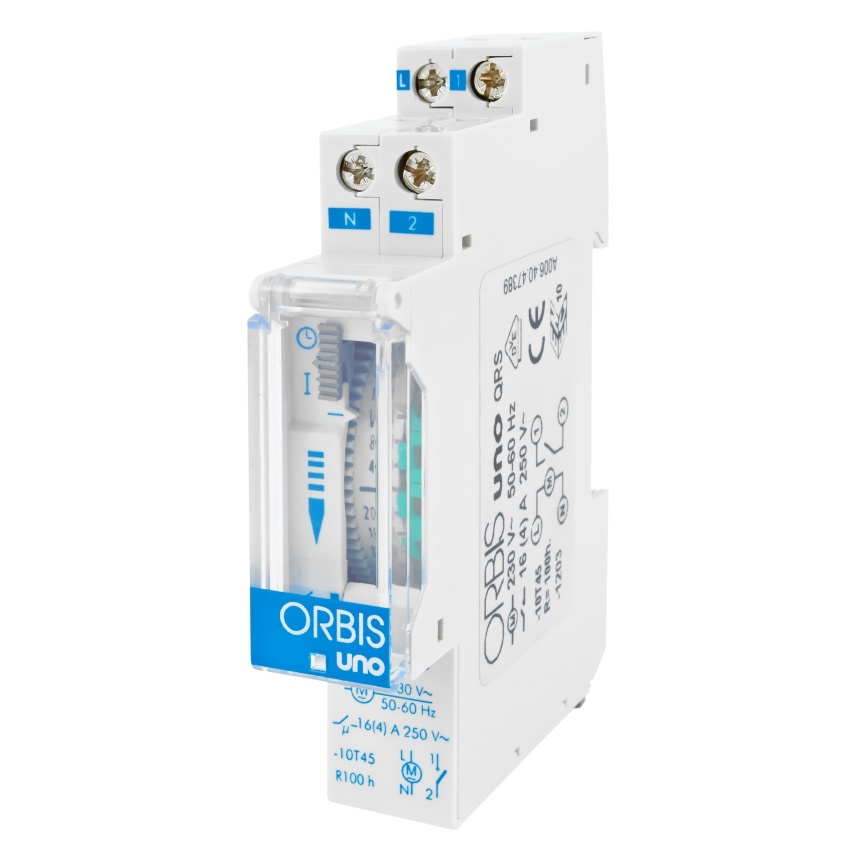 Spínací hodiny ORBIS UNO QRS ELEMAN analog., týdenní, 1M se zálohou, šedé, na DIN lištu, 1000815