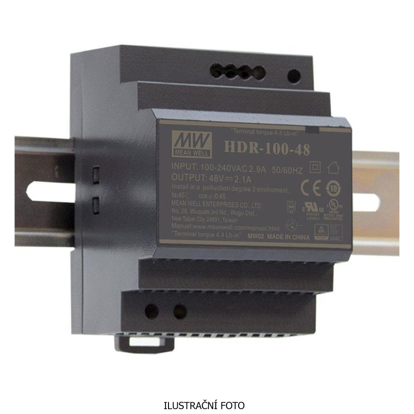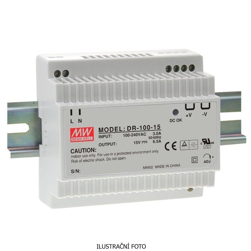 - Pulzní napájecí zdroj MEAN WELL na DIN lištu s jističovým profilem.