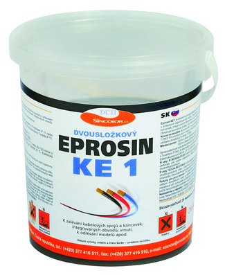 - EPROSIN KE 1 je určen k zalévání v elektrotechnice (zalévání kabelových spojů a koncovek, integrovaných obvodů, vinutí) nebo k odlévání modelů, k zalévání vinutí elektromotorů a cívek transformátorů. Tmel má elektroizolační vlastnosti.