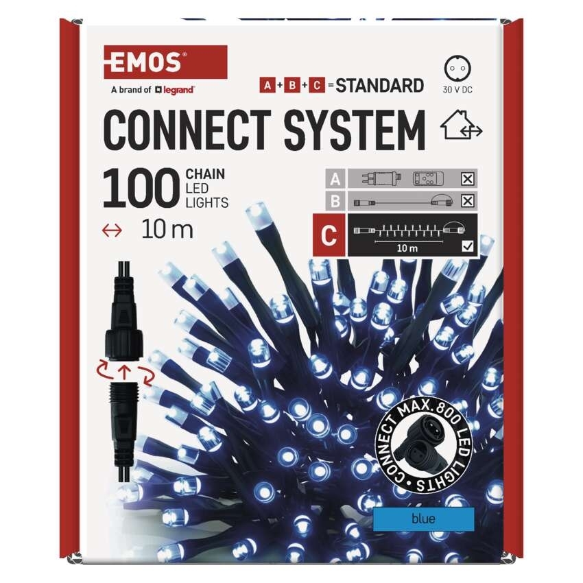 Standard LED vánoční spojovací řetěz EMOS D1AB01 100LED 10 m modrá bez zdroje