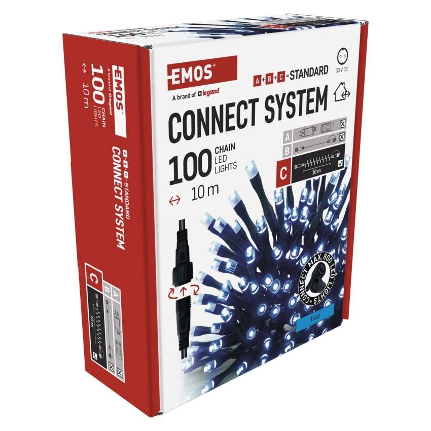 - Jednotlivé světelné LED prvky (C) propojovacího systému CONNECT SYSTEM STANDARD je možné vzájemně propojovat, kombinovat a s využitím prodlužovacích kabelů a rozbočovačů (B) i větvit a zdobit s nimi i vzdálenější místa. Postupným rozšiřováním o další komponenty systému CONNECT SYSTEM je možné dosáhnout profesionálního a rozsáhlého osvětlení bez nutnosti vysoké počáteční investice. Propojovací LED osvětlení je tak ideální volbou pro velkolepou venkovní výzdobu, kde běžné délky řetězů nejsou dostačující. Instalaci systému zvládne skutečně každý.