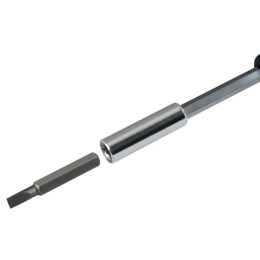 Stanley STHT0-62634 je 32dílná sada přesných šroubováků s vyměnitelnými prodlouženými bity, určená pro jemné a detailní práce. Bity jsou vyrobeny z chrom-vanadiové oceli pro vysokou pevnost a nižší riziko poškození hrotu. Ergonomická rukojeť z acetátu celulózy zajišťuje pohodlné držení a přesnou kontrolu při práci, doplněná otočnou opěrkou prstů pro lepší podporu. Sada splňuje mezinárodní normy a obsahuje rukojeť zásobníku pro přehledné uložení dříků i barevně označené identifikační prvky.