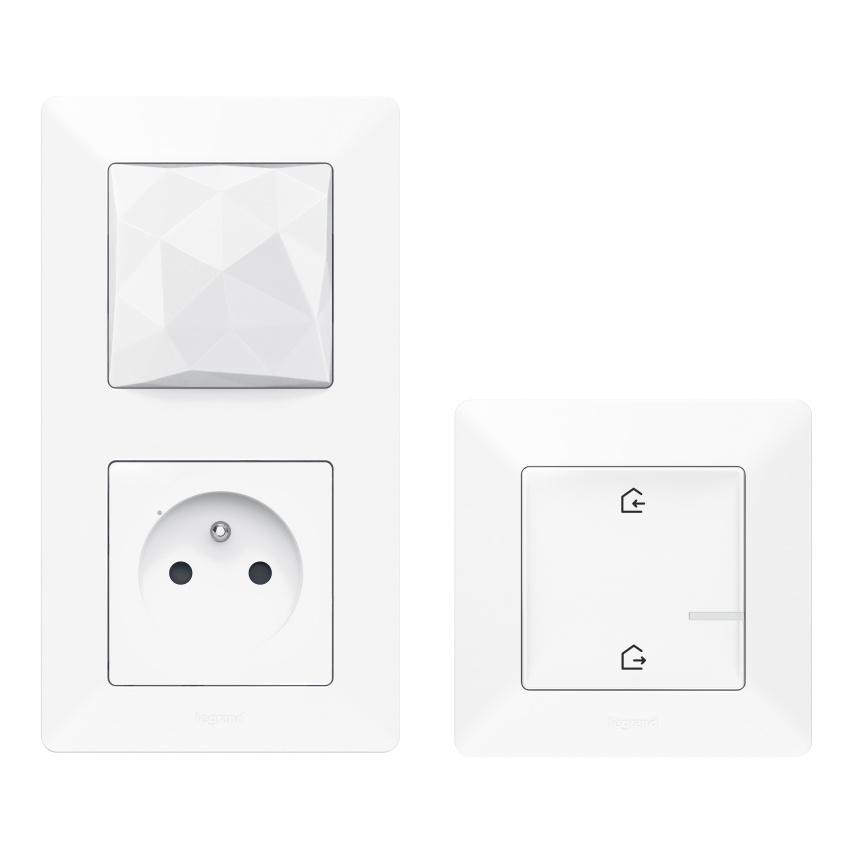 Valena Life with Netatmo startovací kit - nutný pro každou instalaci, obsahuje spínanou zásuvku 230V/16A s měřením spotřeby el. energie (lze ji ovládat bezdrátovými spínači osvětlení, mobilem nebo hlasem, přístroj lze přidat do scénářů nebo časových programů), komunikační bránu a ovládač scénářů "doma/mimo domov", instaluje se pouze do jediné instalační krabice místo klasické zásuvky - barva bílá, dodáván s rámečkem v barvě Bílá.