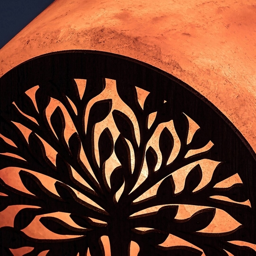 Solná lampa Igdrasil se svými teplými tóny a poutavým designem může být útulným kouskem nábytku v našem moderním obývacím pokoji. Model s charakteristickým tvarem a vzorem je vyroben se stupňovitým, obdélníkovým podstavcem, který drží kotoučovou lampu zdobenou orientálními motivy. Igdrasil, hrající v oranžových odstínech, lze umístit na stůl nebo poličku, která odpovídá jeho stylu. Malou solnou lampu lze použít s jedním světelným zdrojem o výkonu až 15 W, objímkou typu E14. K tomuto modelu se nejvíc hodí světelný zdroj s teplým bílým světlem, který pomáhá vytvářet v místnosti domácí, intimní atmosféru. Rozměry dekorační lampy Igdrasil jsou následující: šířka 70 mm, výška 160 mm, průměr 150 mm.