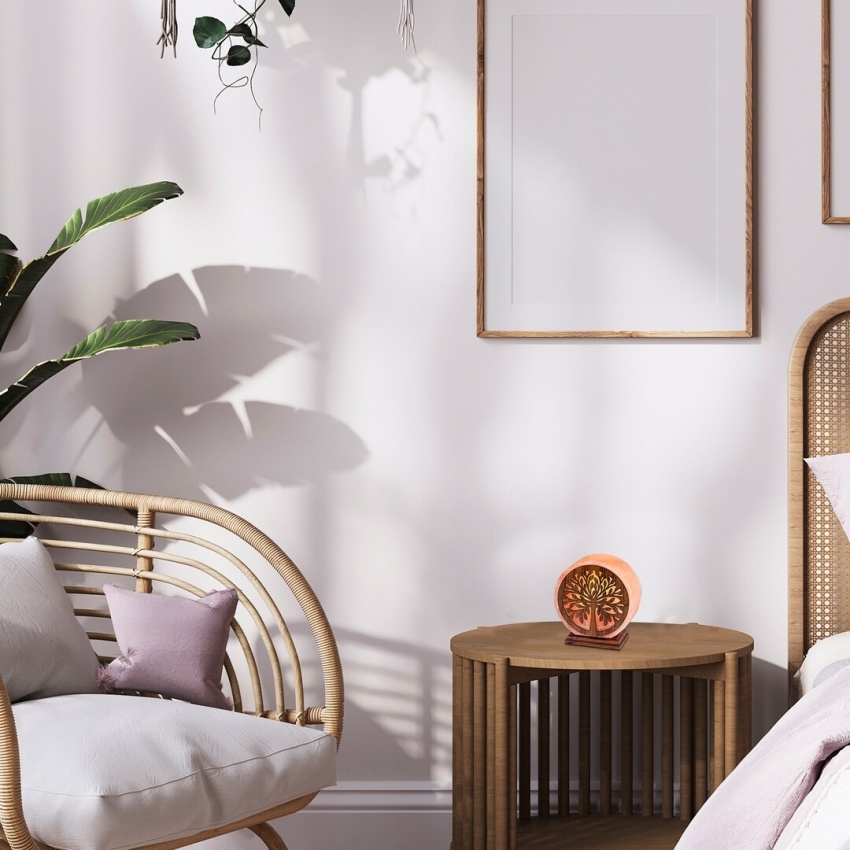 - Solná stolní lampa vyrobená z přírodních materiálů s orientální atmosférou.