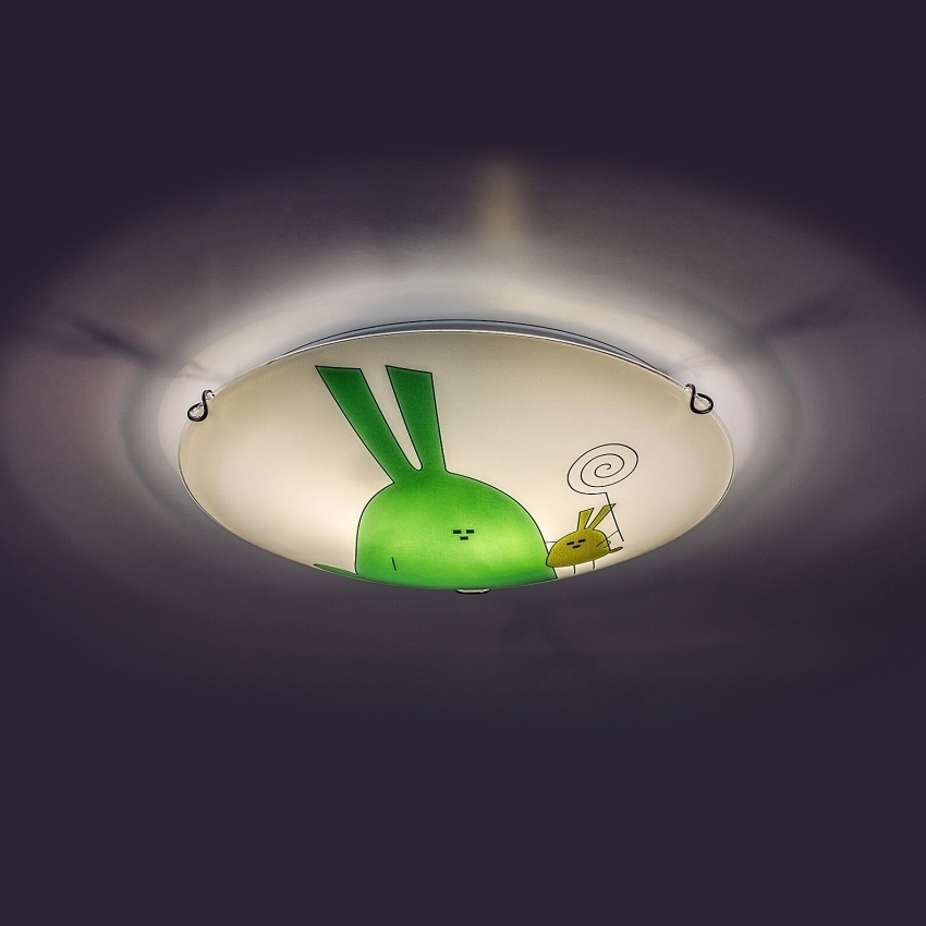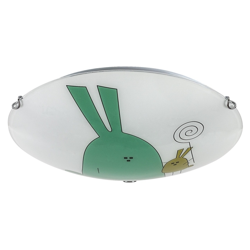Flappy je hravé dětské svítidlo, které promění pokoj vašich nejmenších v útulné a radostné místo. Bílé kovové tělo doplňuje kulaté skleněné stínítko s barevným motivem, který působí přívětivě a podporuje dětskou představivost. Lze jej použít jako stropní nebo nástěnné svítidlo, takže se snadno přizpůsobí rozložení místnosti. Svítidlo je určeno pro dvě žárovky s paticí E27 o maximálním příkonu 60 W (zdroje nejsou součástí balení). Použitím teplého bílého světla docílíte klidné atmosféry, která pomáhá dětem relaxovat i usínat. Průměr svítidla je 400 mm.