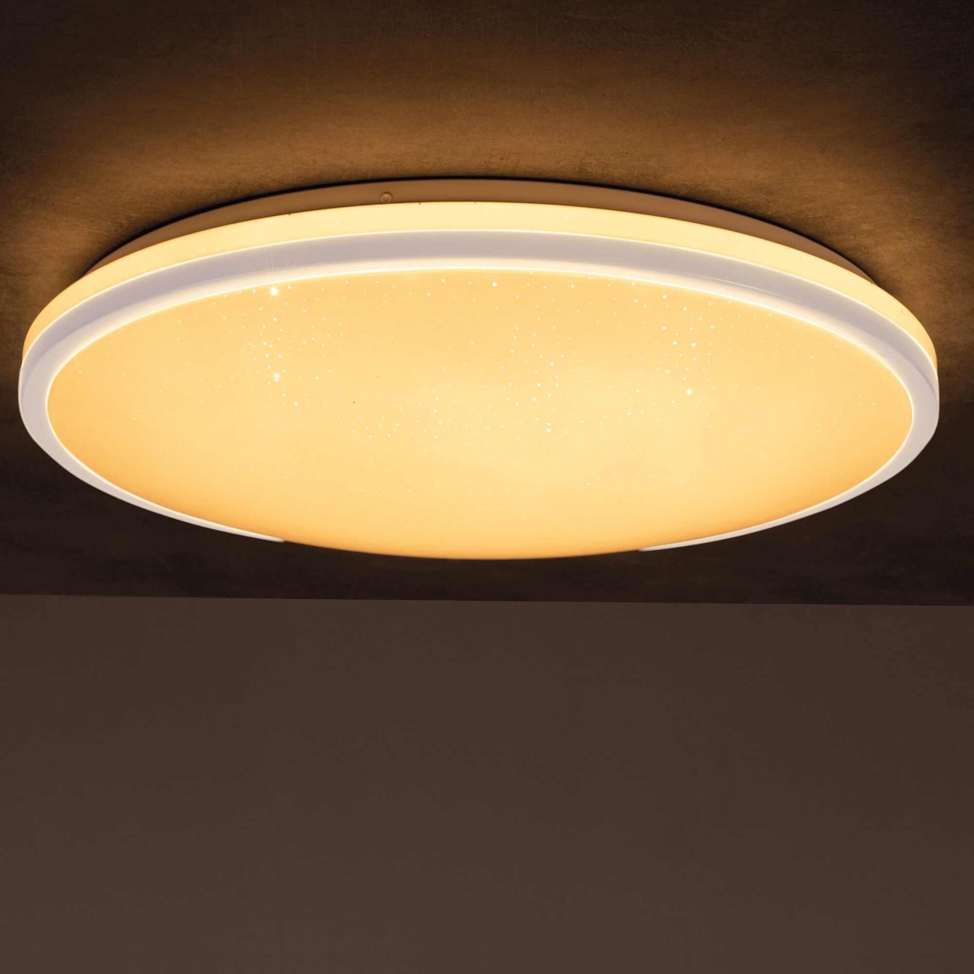 Stropní LED svítidlo ARVOS N je vybaveno integrovaným LED zdrojem s maximálním výkonem 37 W a světelným tokem až 2680 lm. Umožňuje nastavení teploty chromatičnosti v rozsahu 3000 K, 4000 K a 6500 K a je stmívatelné pomocí dálkového ovládání. Svítidlo je určeno pro vnitřní použití, má stupeň krytí IP20 a podle dodaného popisu je vhodné pro osvětlení obývacích pokojů, ložnic nebo kancelářských prostor. Součástí funkční výbavy je také režim Night Light s jemným nočním světlem o barvě 3000 K.