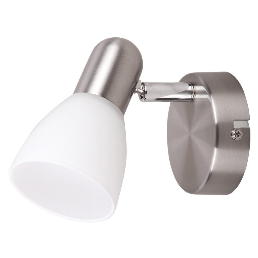Interiérové dekorativní nástěnné bodové svítidlo pro max. 40W žárovku nebo úspornou žárovku s paticí E14, barva satén chrom.