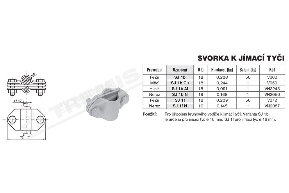 Svorka k jímací tyči, pro připojování kruhového vodiče k jímací tyči. Pro tyč o průměru 18mm