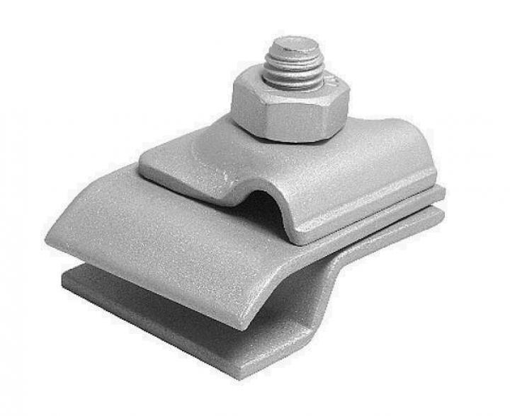 Svorka na okapové žlaby, pro připojení kruhového vodiče k okapovým žlabům.