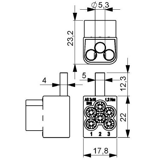Svorka připojovací ELEMAN AS-3x16 SNS jazýček (kolík) pro Al/Cu vodiče 3x16mm2, 1modulová, šedá 1079501
