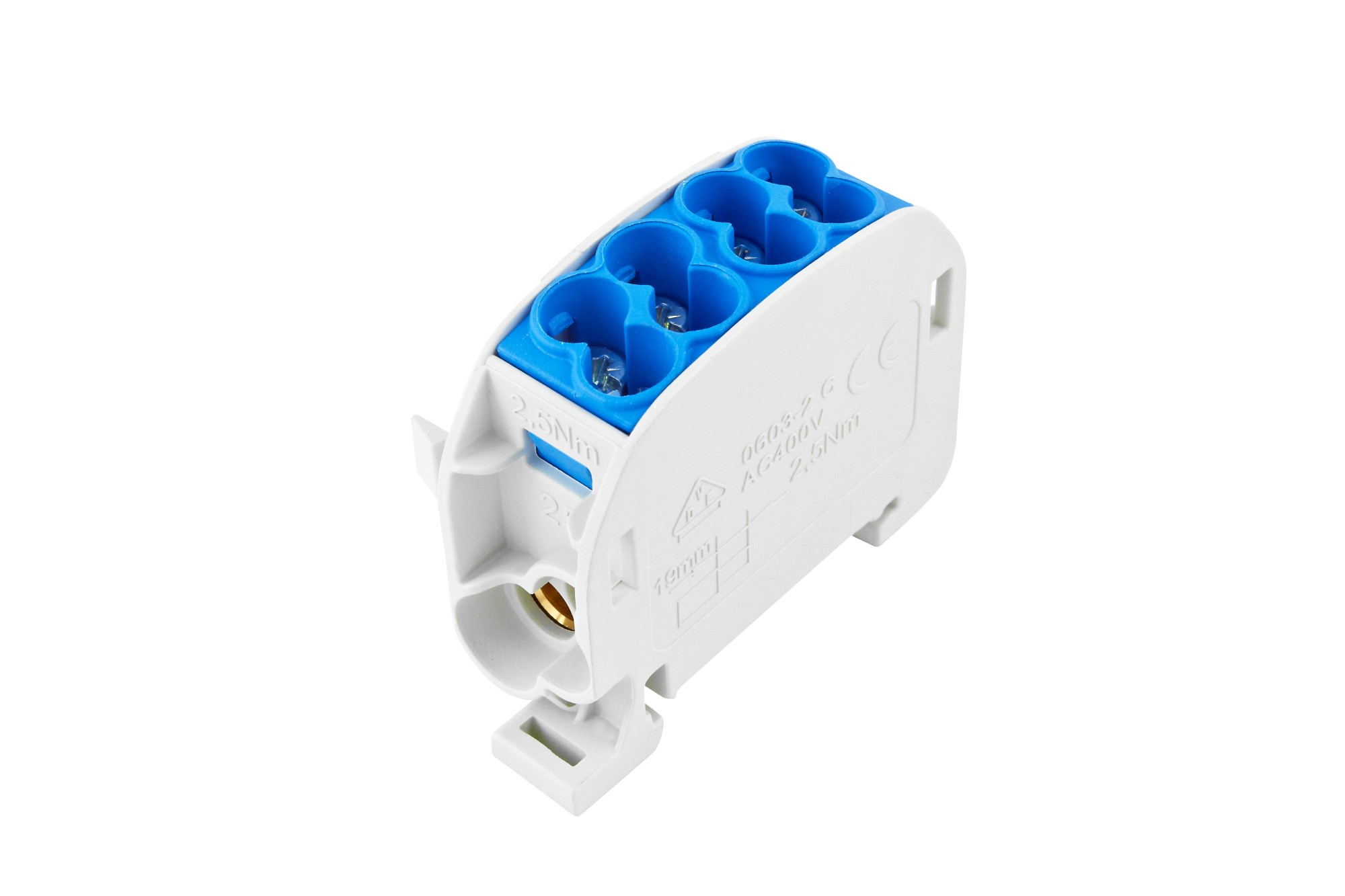 Svorkovnice rozbočovací HLAK 25//1 C N ELEMAN 100A 1pól CU IP20 1006530 modrá na DIN 1006530