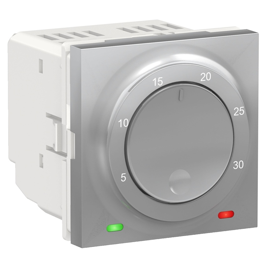 Termostat prostorový otočný 2M Schneider Unica aluminium NU350130