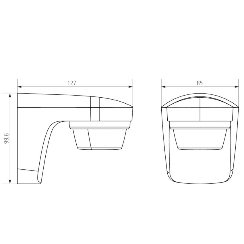 - Hlava čidla je otočná o ±90° ve vodorovné rovině a lze ji sklopit až o 30° dolů
