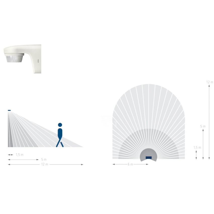 Čidlo pohybu (PIR) theLuxa S180 WH, úhel pokrytí 180°, 12 m, bílé.