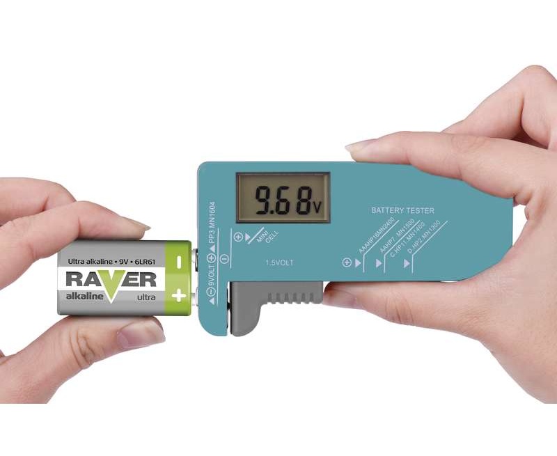 Univerzální tester baterií AA,AAA,C,D,9V, knoflíkové