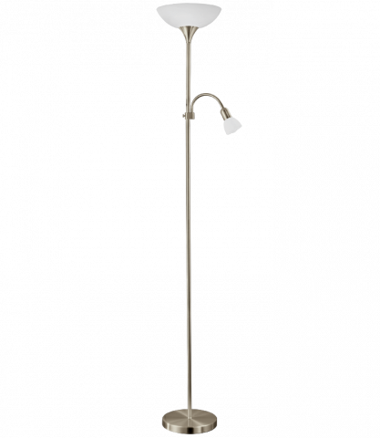 Stojací lampa UP 2 v elegantním designu. Vhodné pro osvětlení v klasickém i moderním interiéru. Tuto stojací lampu tvoří základna z kovu v provedení matný nikl a stínidla z mléčného skla.